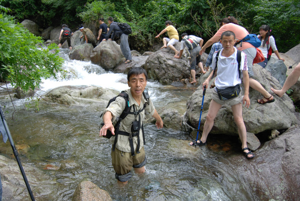 现在想起来真是觉得玄,那天我去带队的时候,把相机的内存卡给忘在家里了,按照惯例,我们会在那天停下来的地方拍集体照,但是因为我没带内存卡集体照没拍成,就在大家都放空在休息的瞬间,我忽然看到山顶上有好大一股水冲下来,我就知道遭了,连忙大喊快跑有洪水!山上的瀑布因为下雨水量暴涨把水渠冲断了一道口子,路被截断,我们只好沿原路返回往高的地方走。要不是当时我发现得早,赶在洪水来之前带着队伍撤到了相对安全的地方,又打电话给当地我认识的农民过来救我们,那天真的是没命了。”