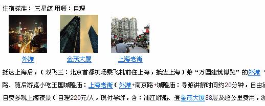 13、线路自动调用景点的功能。客户添加了景点以后,如果线路行程里面包含此景点的名称,则会自动调出来该景点图片,点击就进入该景点的景点介绍,如下图