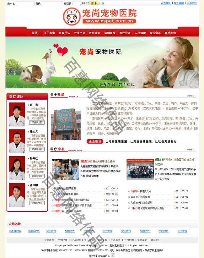 宠尚宠物医院是一所集宠物诊疗、宠物B超、X光、保健、美容、寄养、用品为一体的综合性医院。位于中牟县贸易区北环路路南(双虎家私对面)。营业面积400平方米,是中牟县最大的一家综合性专业宠物医院。 本院共有工作人员12人,其中博士1人、硕士4人、学士4人。坐诊宠物医生具有国家执业宠物医师资格证,具备专业宠物诊疗知识与技能,拥有丰富的宠物诊疗经验。 宠物医院一楼营业面积200平方米,主要进行门诊咨询、疾病诊治、宠物B超、X光、免疫注射、化验、住院、各种手术等;二楼营业面积100平方米,主要进行宠物美容、保健、洗牙、防疫、用品、名犬销售、借配、婚介、水族;三楼营业面积100平方米,主要进行宠物寄养、训导、分娩接产。 本院特色: (1)外科手术:本院具备专业外科手术室,拥有高频电刀、呼吸麻醉机、心电图仪、内窥镜、制氧机、高频X光机、骨科器械等仪器设备,除能进行常规手术外,还能进行宠物四肢及骨关节手术、骨盆手术、胸腔手术。 (2)影像诊断:本院具备先进的宠物专用彩色B型超声诊断仪、高频X光机、纤维内窥镜,能进行全身各组织器官的无损伤诊断。 (3)临床诊断:本院具备动物专用全自动血液分析仪、生化仪、尿液分析仪等全套临床诊断设备,能对各种疾病进行准确检测和诊断。 (4)发情鉴定:通过观察生殖道脱落细胞形态变化可以准确判定排卵时间,以此可提高配种准确率及产仔数。由田超老师主持的“藏獒发情排卵的鉴定研究”项目已获得河南省教育厅立项(项目编号2011C230001)。 (5)本院门诊全年无休、24小时营业,时刻为您的爱宠提供健康保证! 网址:http://www.cspet.com.cn 效果图:  |