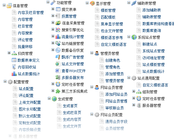 功能实施人员无须考虑数据库、程序代码等通常情况下制作功能的必经步骤,从而大大加快了网站的实施时间,同时还能够保证功能模块的稳定和效率。