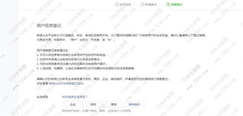 第六步:接下来就是最后的信息登录了,需要注意的是目前微信小程序只支持企业、政府、媒体和其他各类组织加入,还不支持个人开发。