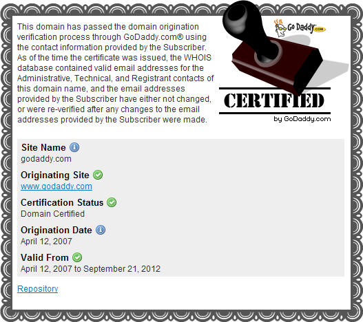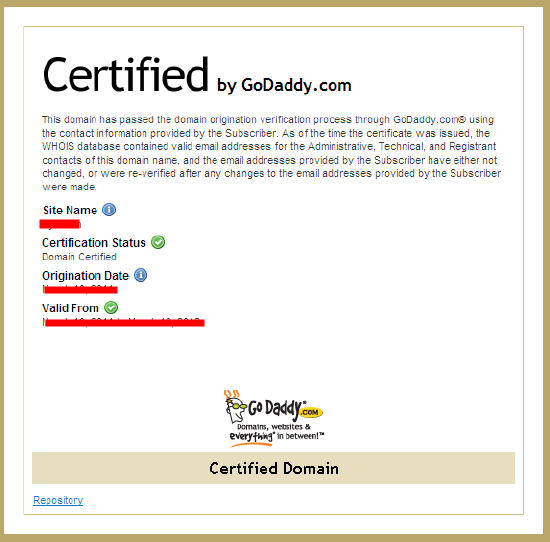 下面是GoDaddy证书的样张: