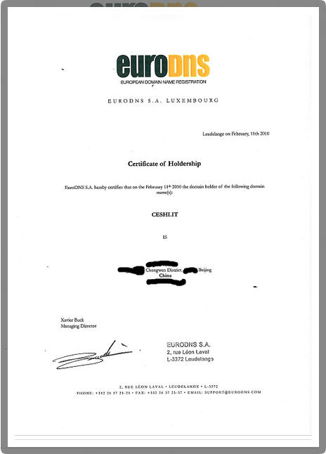 某些后缀只要求域名联系人为本国(地区)公民,这类域名通过“挂靠”注册成功后可以通过WHOIS数据库查询到注册人的真实信息。还有一些后缀,对持有人身份要求严格,这类域名通过“挂靠”注册成功后,WHOIS数据库中无法查询到注册人的真实信息,这时,注册商通常会给注册人出具所谓的“权利证书”,证明你对本域名拥有权利。