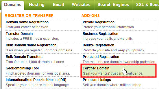GoDaddy的域名证书需要付费,每年4.99美元,目前只支持.com、.net、.org、.info、.mobi、.co、.me几种后缀。购买方法见下图:
